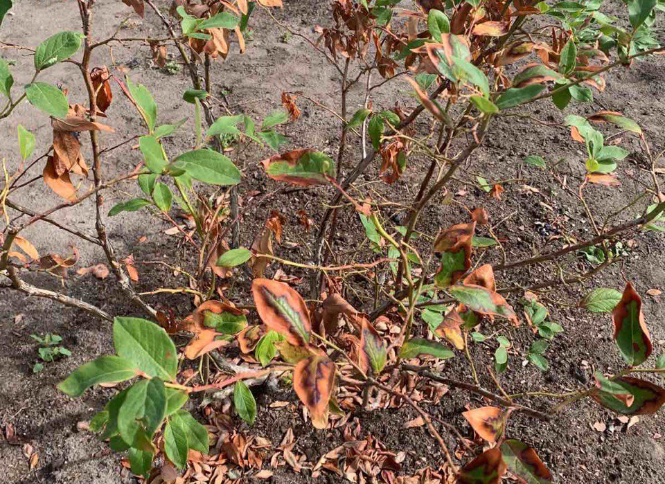 Найпоширеніша і практично головна причина засихання листя лохини — недостатній полив або зовсім його відсутність.