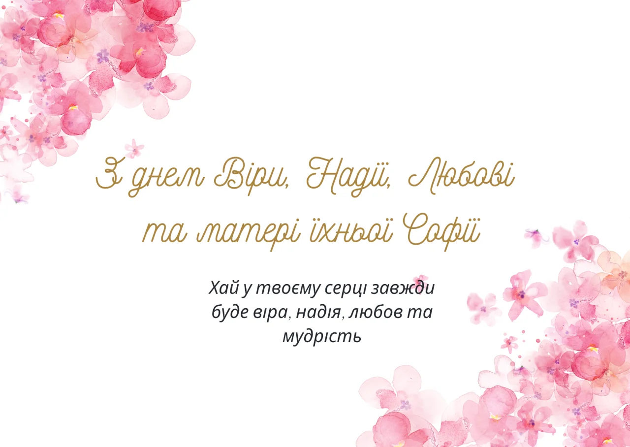 У цей особливий день бажаю, щоб Віра завжди направляла вас, Надія зміцнювала віру в майбутнє, а Любов дарувала вам найпрекрасніші миті.
