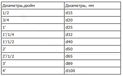 Згідно стандартного ряду, прийнятим у більшості країн, труби мають наступні внутрішній діаметр, вимірюється в мм: 10, 15, 20, 25, 32, 40, 50 і т.
